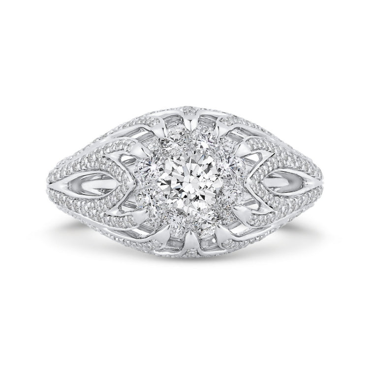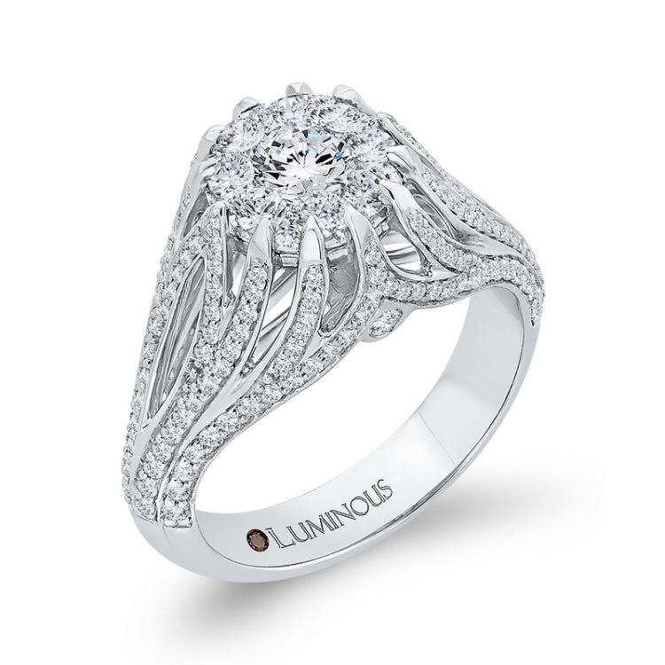 Split Shank Diamond Engagement Ring in 14K White Gold, Side Stone Shape: Round, Side Stone Color: IJ, Side Stone: 178