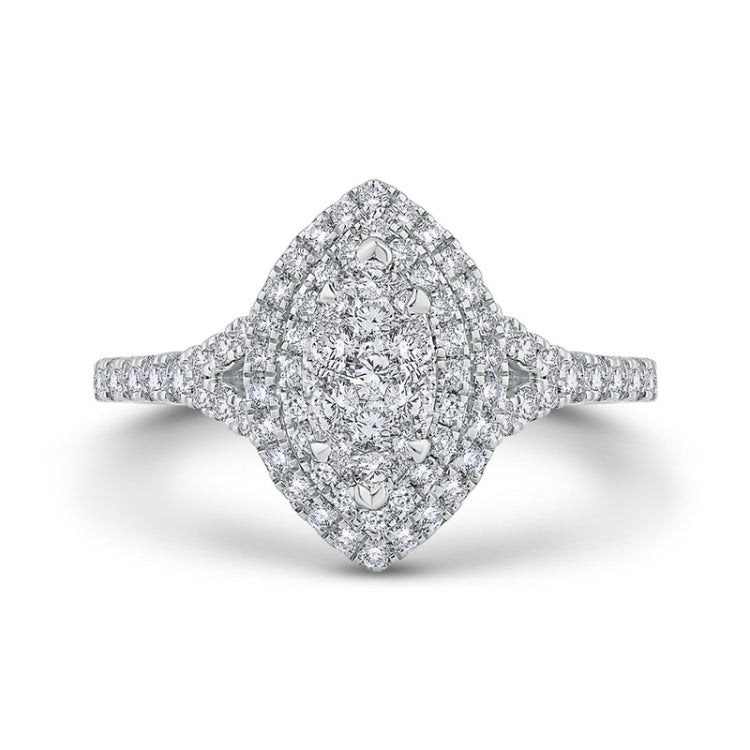Split Shank Round Diamond Marquise Cut Shape Double Halo Engagement Ring in 14K White Gold
