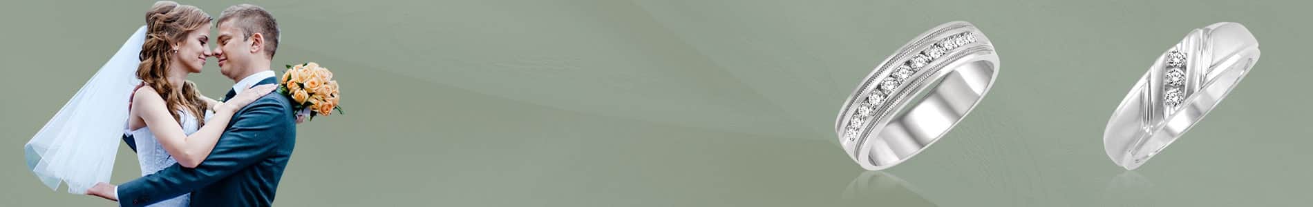 14K White Gold with Round Diamond Men's Band, Side Stone Shape: Round, Side Stone Color: GH, Side Stone: 11