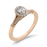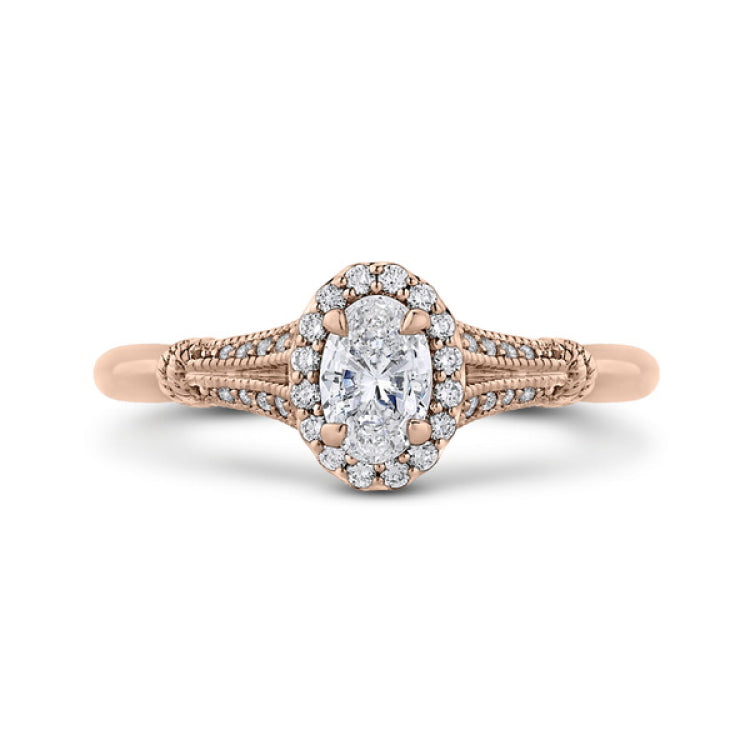 Split Shank Oval Cut Diamond Halo Cathedral Style Engagement Ring in 14K Rose Gold