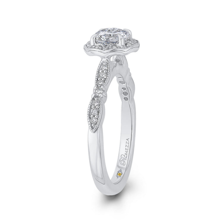 Round Diamond Halo Engagement Ring in 14K White Gold, Side Stone Shape: Round, Side Stone Color: GH, Side Stone: 24