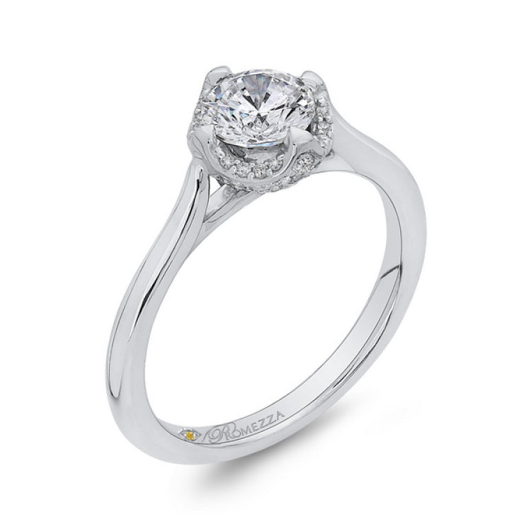 Diamond Engagement Ring in 14K White Gold, Side Stone Shape: Round, Side Stone Color: GH, Side Stone: 56