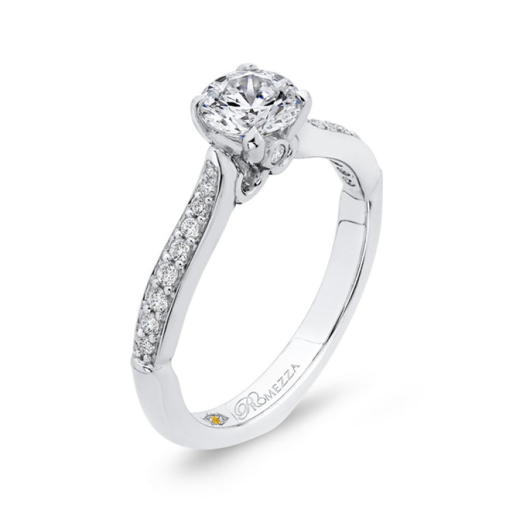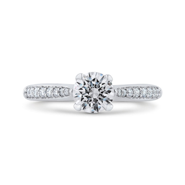 Round Ct Diamond Engagement Ring in 14K White Gold, Side Stone Shape: Round, Side Stone Color: GH, Side Stone: 22
