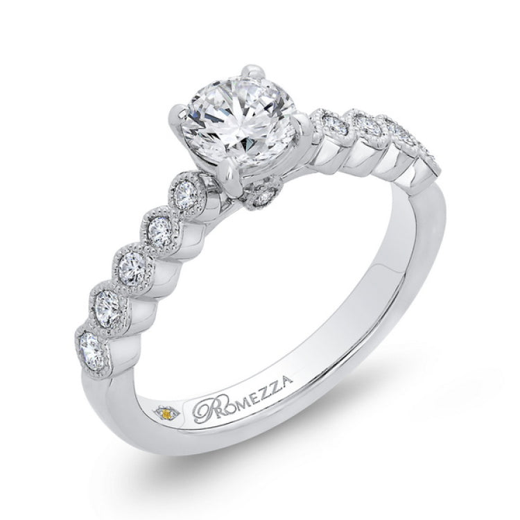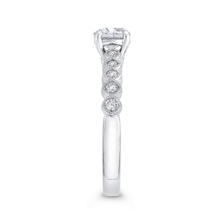 Diamond Engagement Ring in 14K White Gold, Side Stone Shape: Round, Side Stone Color: GH, Side Stone: 14