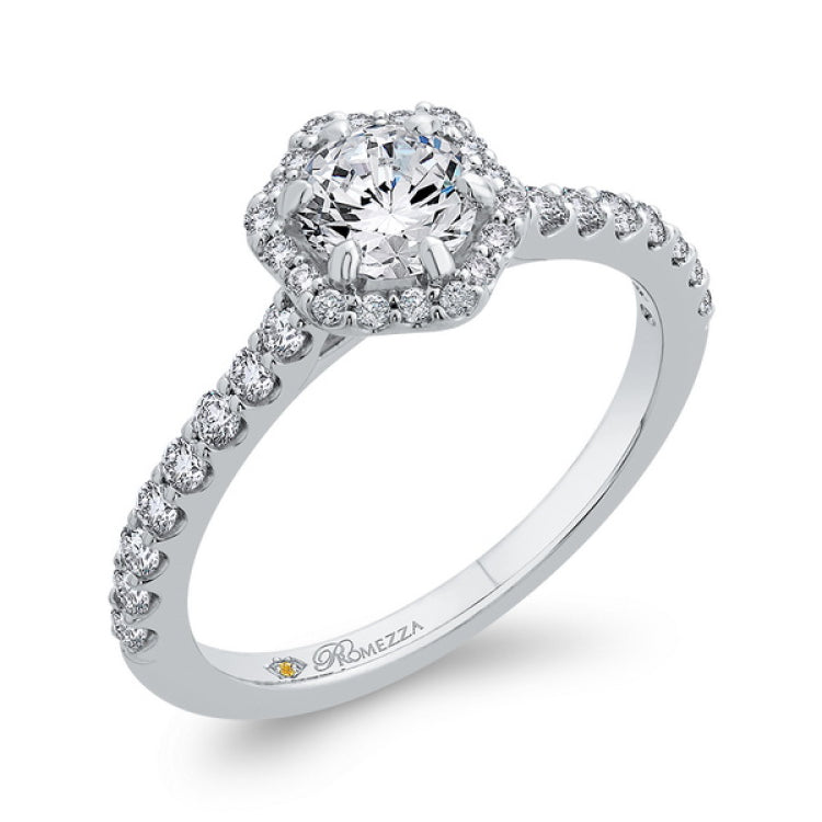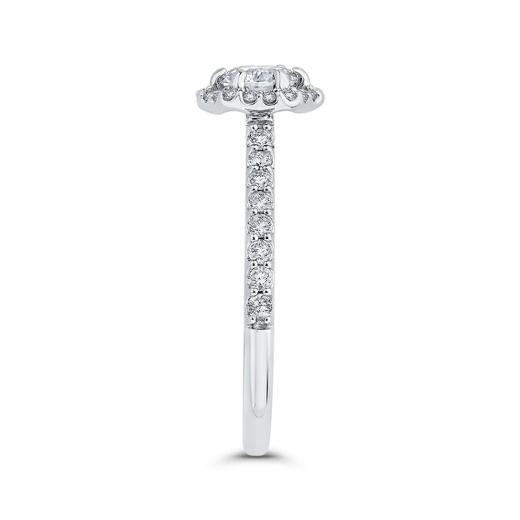 Round Diamond Halo Engagement Ring in 14K White Gold, Side Stone Shape: Round, Side Stone Color: GH, Side Stone: 36