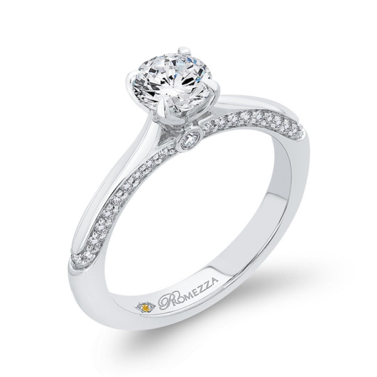 Round Diamond Engagement Ring in 14K White Gold, Side Stone Shape: Round, Side Stone Color: GH, Side Stone: 42