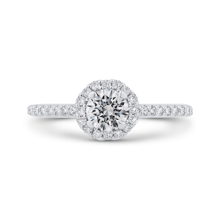 Round Diamond Halo Engagement Ring in 14K White Gold