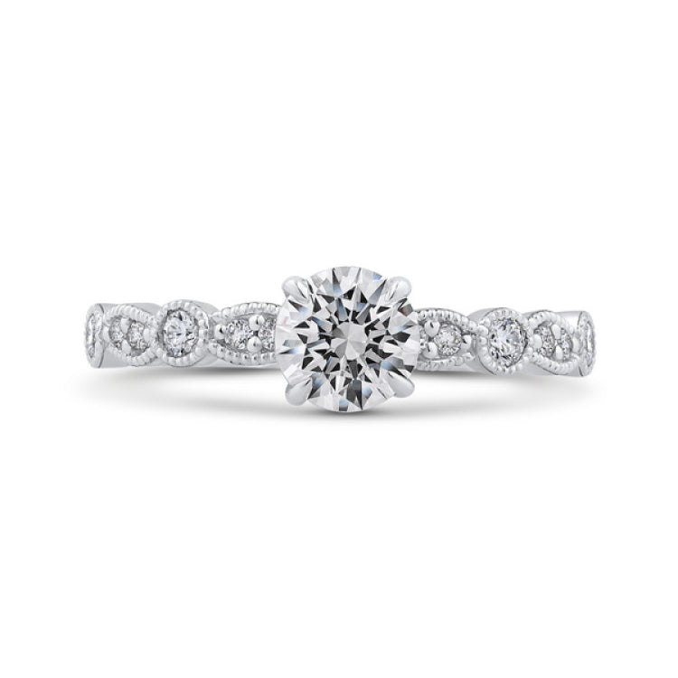 Diamond Engagement Ring in 14K White Gold, Side Stone Shape: Round, Side Stone Color: GH, Side Stone: 13