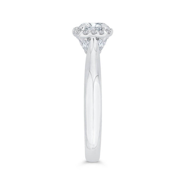 Diamond Halo Engagement Ring in 14K White Gold, Side Stone Shape: Round+Marquise, Side Stone Color: GH, Side Stone: 23