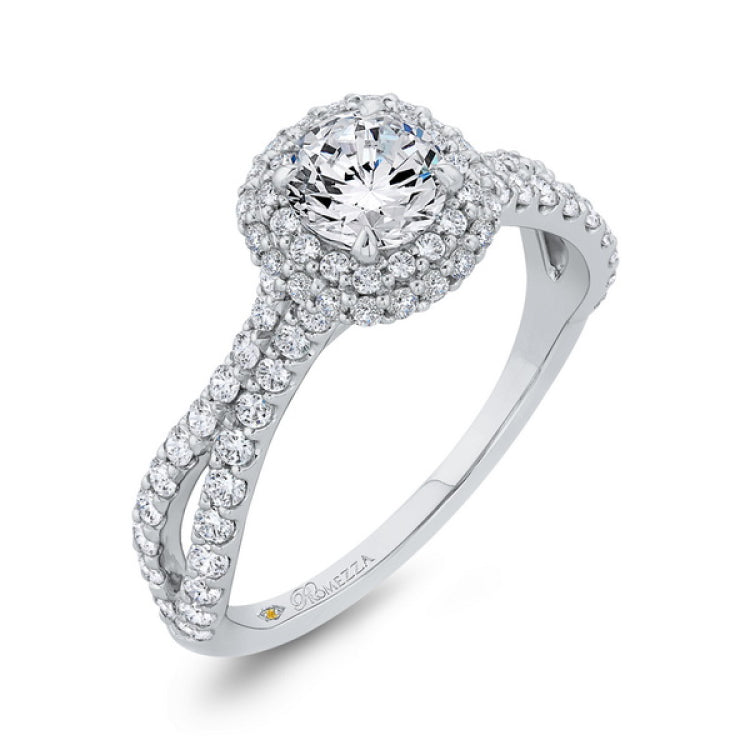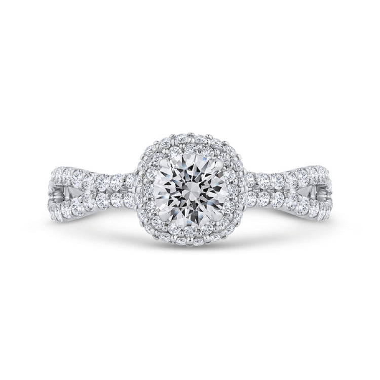 Split Shank Diamond Halo Engagement Ring in 14K White Gold