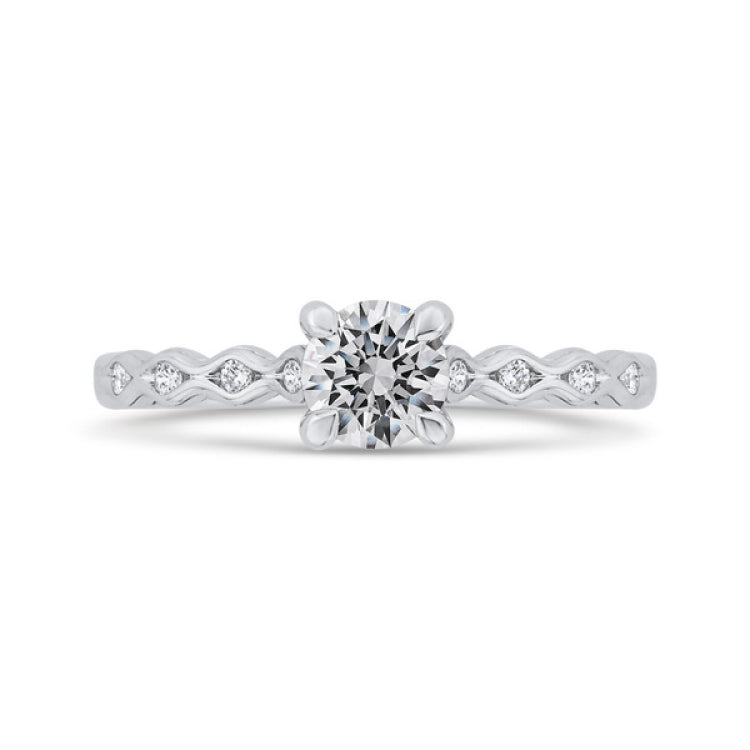 Diamond Solitaire with Accents Engagement Ring in 14K White Gold, Side Stone Shape: Round, Side Stone Color: GH, Side Stone: 21