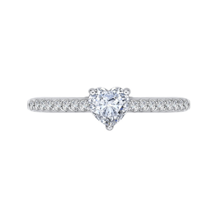 Heart Diamond Vintage Engagement Ring in 14K White Gold, Side Stone Shape: Round, Side Stone Color: GH, Side Stone: 19
