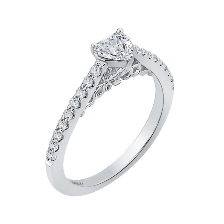 Heart Diamond Vintage Engagement Ring in 14K White Gold