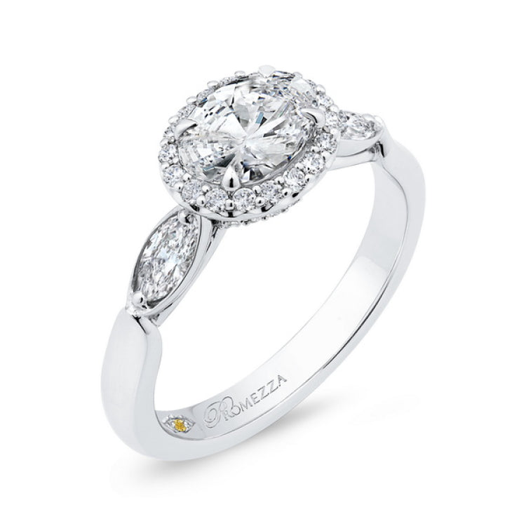 Oval Cut Diamond Halo Engagement Ring in 14K White Gold, Side Stone Shape: Round & Marquise, Side Stone Color: GH, Side Stone: 49