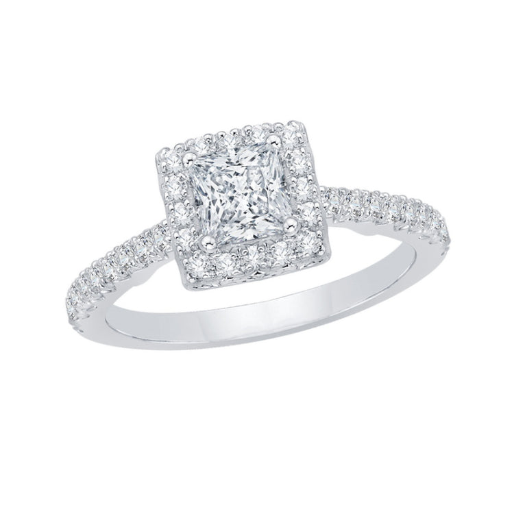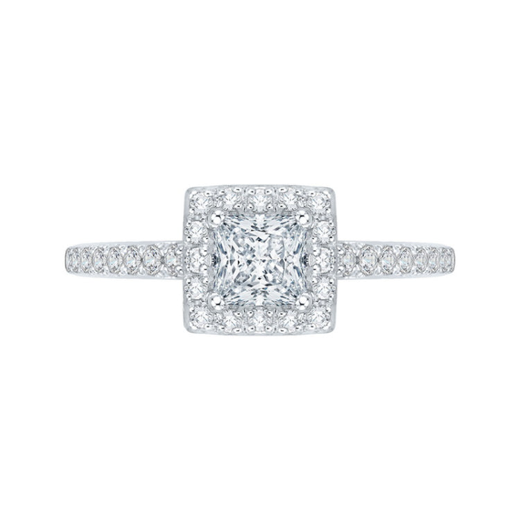 Princess Cut Diamond Halo Engagement Ring in 14K White Gold