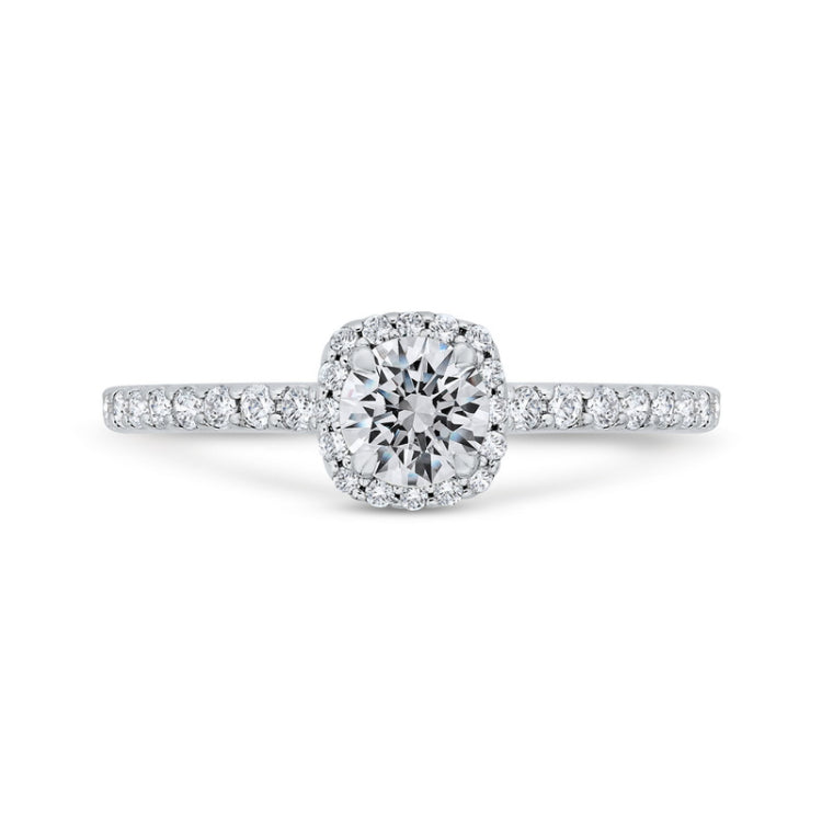 Diamond Halo Engagement Ring in 14K Two Tone Gold, Side Stone Shape: Round, Side Stone Color: GH, Side Stone: 33