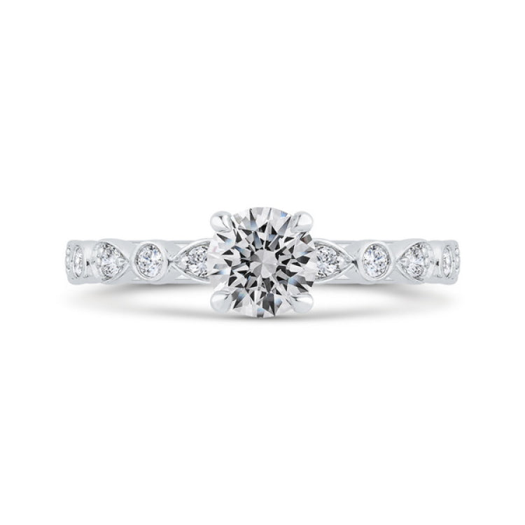 Bezel Set Round Diamond Engagement Ring in 14K White Gold, Side Stone Shape: Round, Side Stone Color: GH, Side Stone: 11