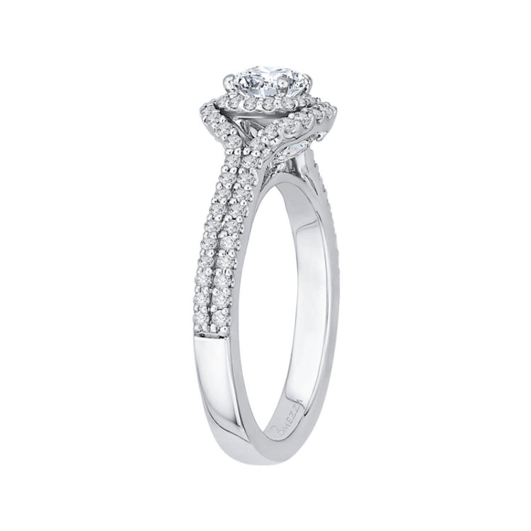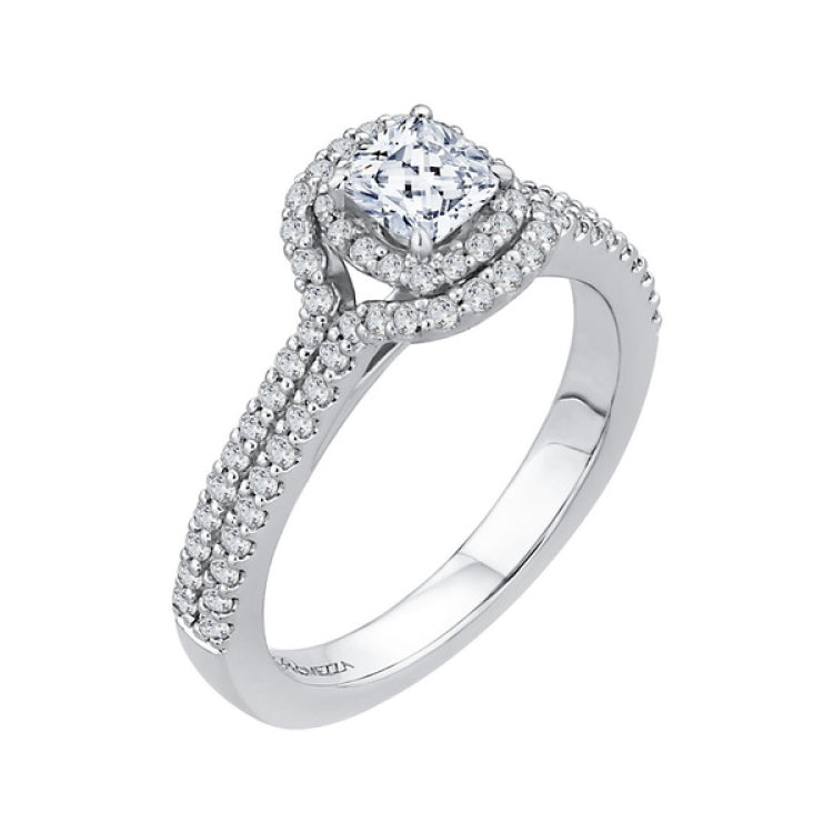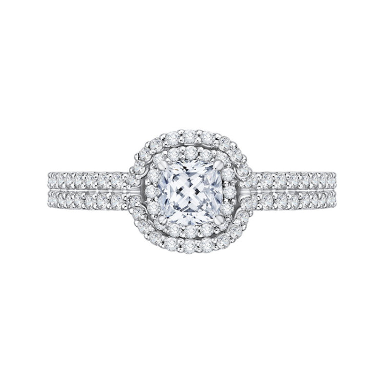 Cushion Cut Diamond Double Halo Cathedral Style Engagement Ring in 14K White Gold