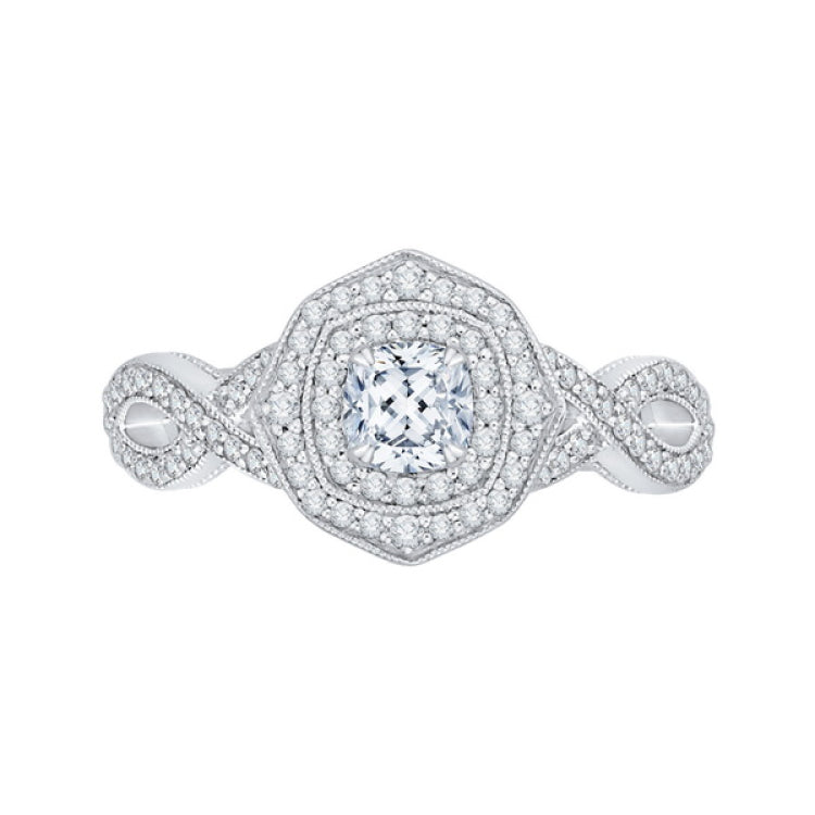 Cushion Cut Diamond Double Halo Engagement Ring in 14K Two Tone Gold