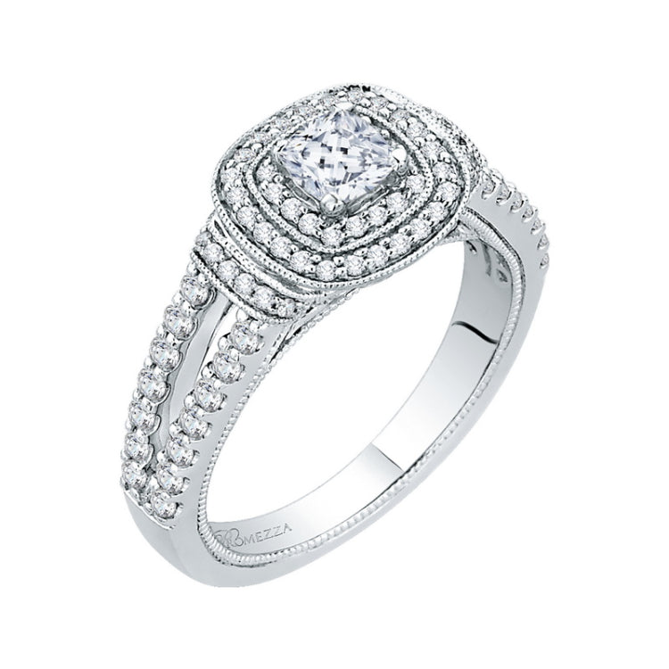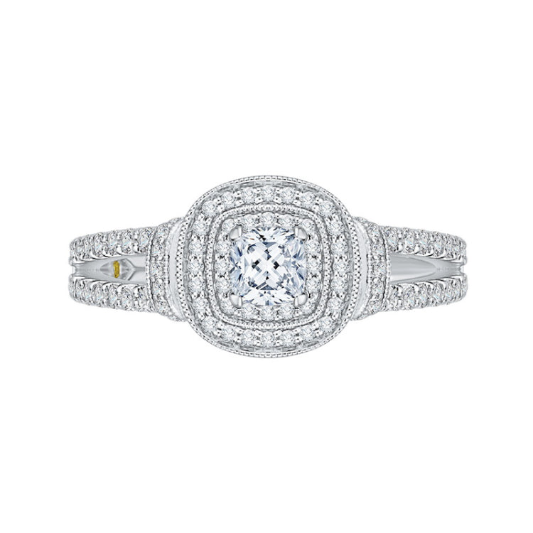 Cushion Cut Diamond Double Halo Engagement Ring in 14K White Gold