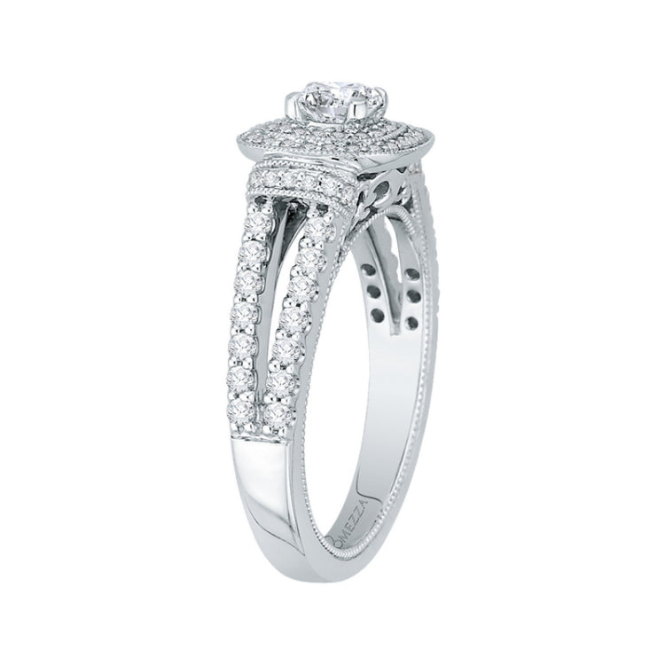 Cushion Cut Diamond Double Halo Engagement Ring in 14K White Gold, Side Stone Shape: Round, Side Stone Color: GH, Side Stone: 83