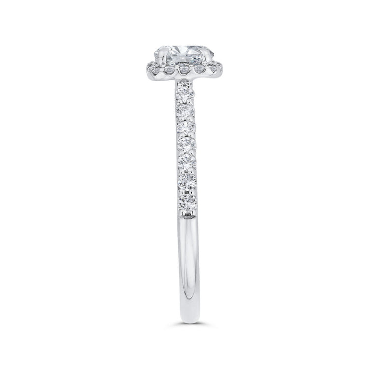 Diamond Halo Engagement Ring in 14K Two Tone Gold, Side Stone Shape: Round, Side Stone Color: GH, Side Stone: 31