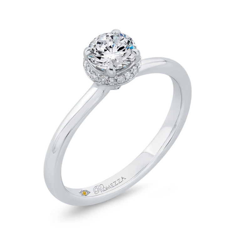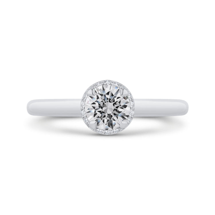Diamond Halo Engagement Ring in 14K White Gold, Side Stone Shape: Round+Marquise, Side Stone Color: GH, Side Stone: 21