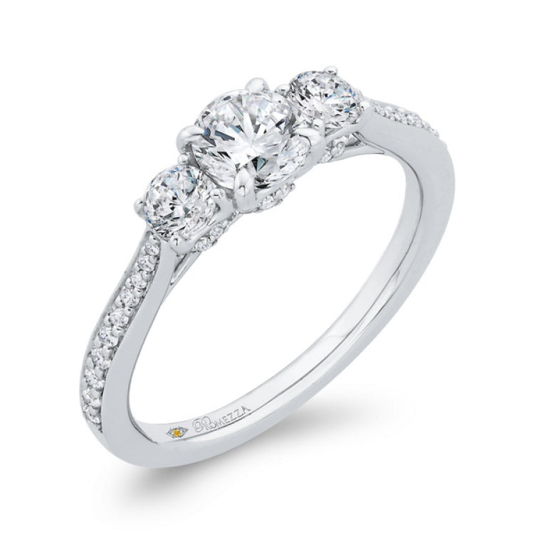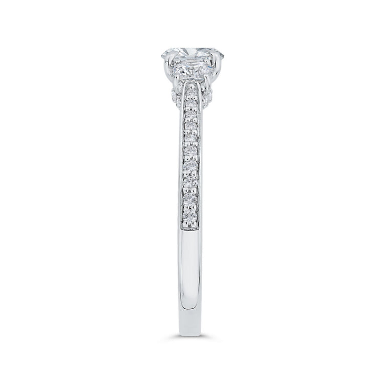 Diamond Three-Stone Plus Engagement Ring in 14K White Gold, Side Stone Shape: Round, Side Stone Color: GH, Side Stone: 47