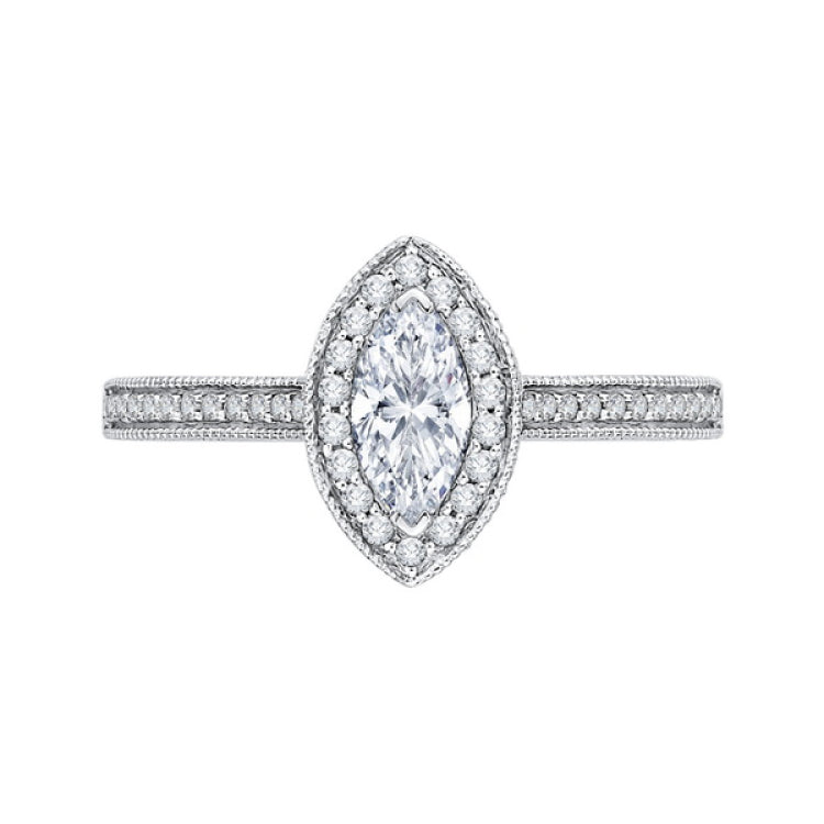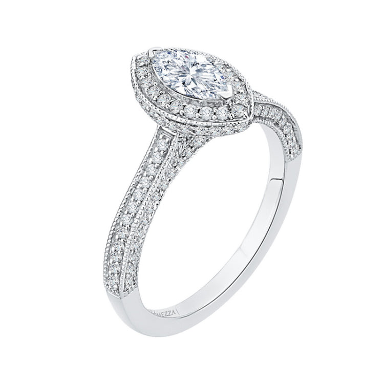 Marquise Cut Diamond Halo Engagement Ring in 14K White Gold