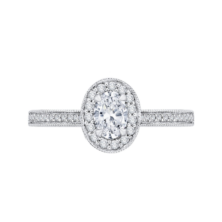 Oval Cut Diamond Halo Engagement Ring in 14K White Gold