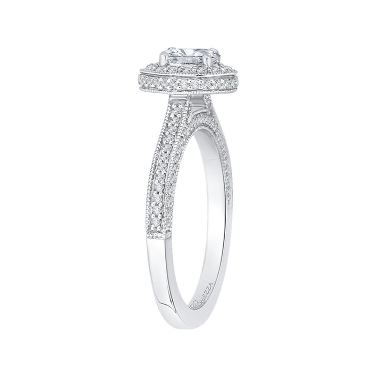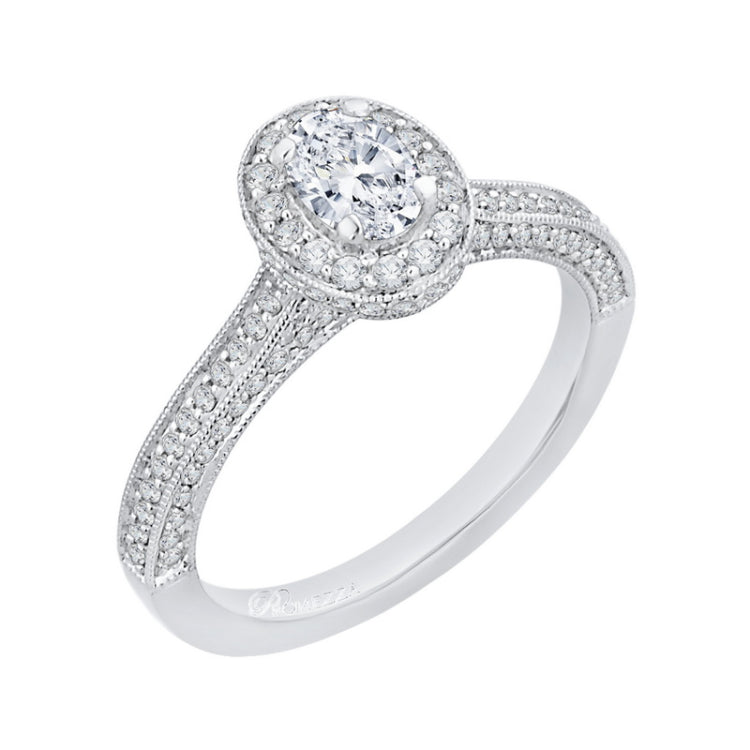 Oval Cut Diamond Halo Engagement Ring in 14K White Gold, Side Stone Shape: Round, Side Stone Color: GH, Side Stone: 126