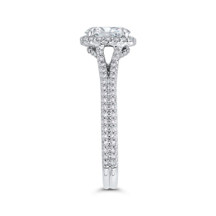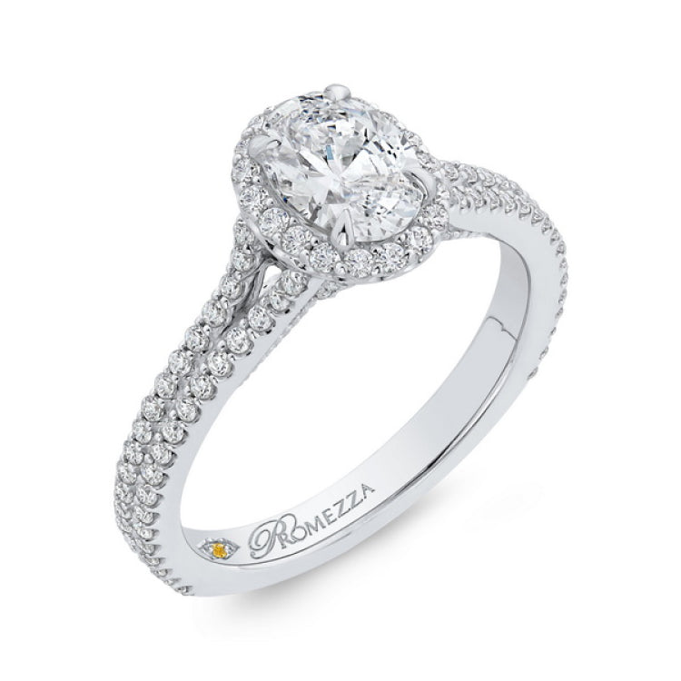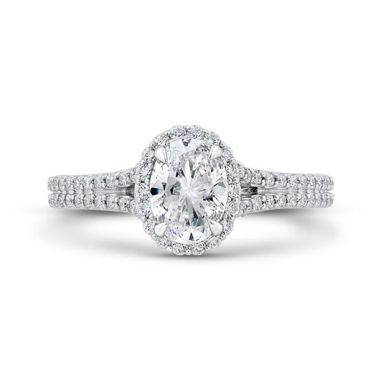 Split Shank Oval Cut Diamond Halo Engagement Ring in 14K White Gold