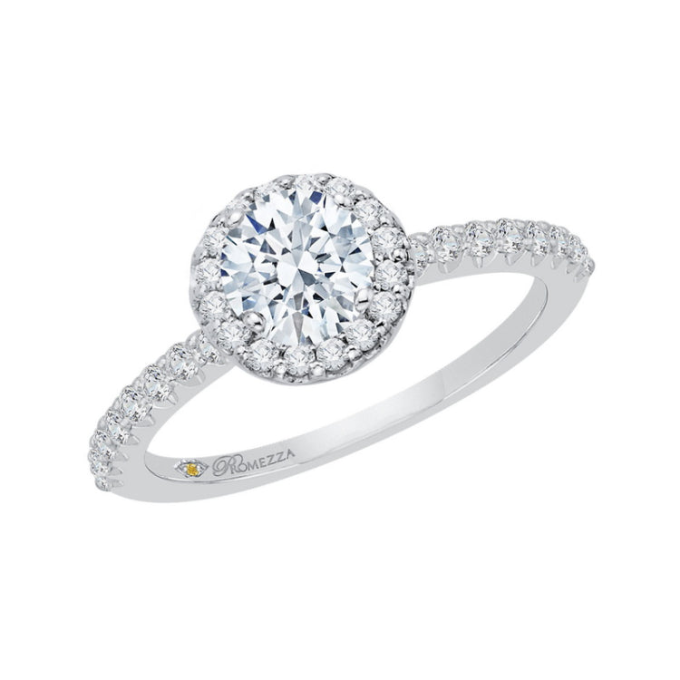 Diamond Halo Engagement Ring in 14K White Gold, Side Stone Shape: Round, Side Stone Color: GH, Side Stone: 46