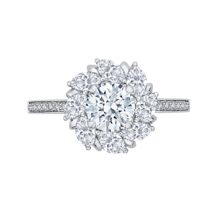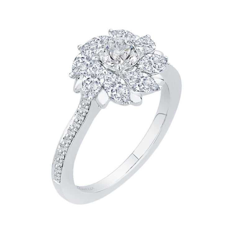 Round and Marquise Cut Diamond Floral Engagement Ring in 14K White Gold