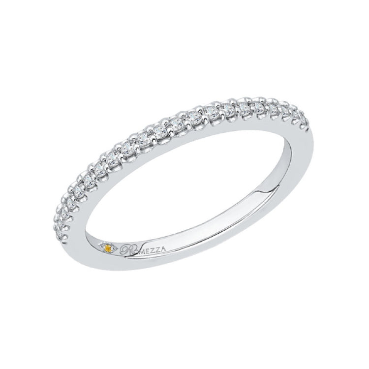 Round Diamond Wedding Band In 14K White Gold, Side Stone Shape: Round, Side Stone Color: GH, Side Stone: 21