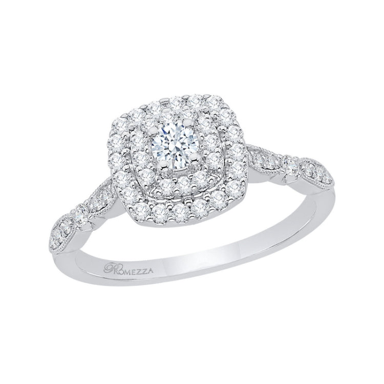 Diamond Double Halo Engagement Ring in 14K White Gold