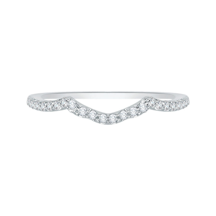 Diamond V Shape Wedding Band in 14K White Gold, Side Stone Shape: Round, Side Stone Color: GH, Side Stone: 24