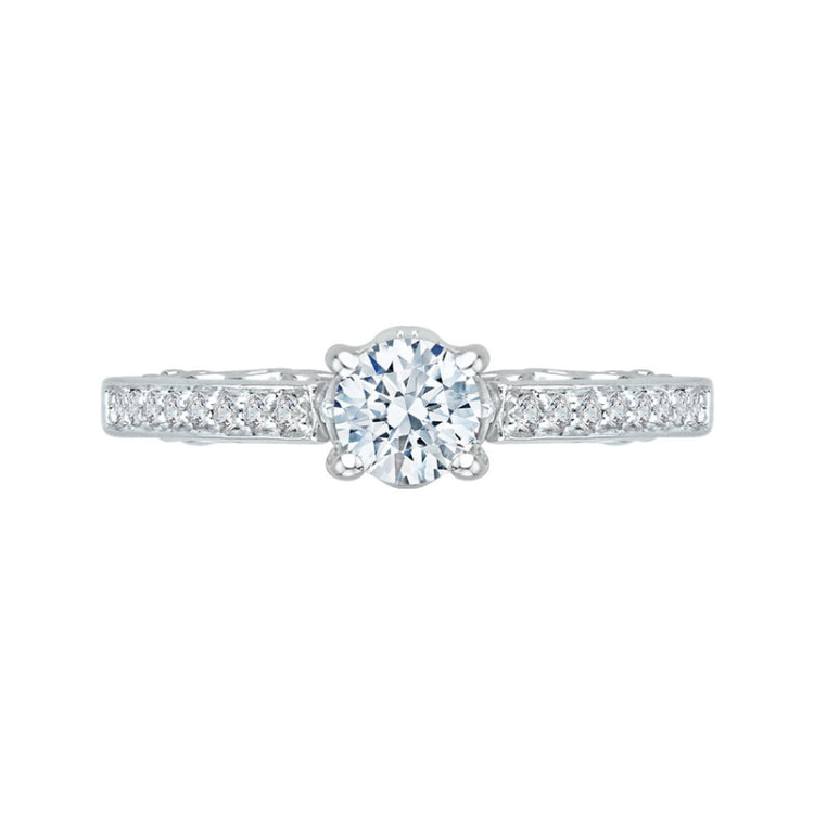Round Diamond Engagement Ring In 14K White Gold, Side Stone Shape: Round, Side Stone Color: GH, Side Stone: 16