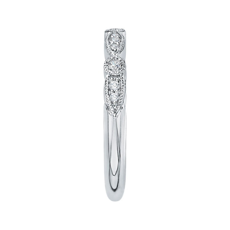 Round Diamond Wedding Band in 14K White Gold, Side Stone Shape: Round, Side Stone Color: GH, Side Stone: 14