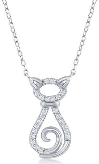 Sterling Silver Cubic Zirconia Cat Necklace Adjustable 16-18"