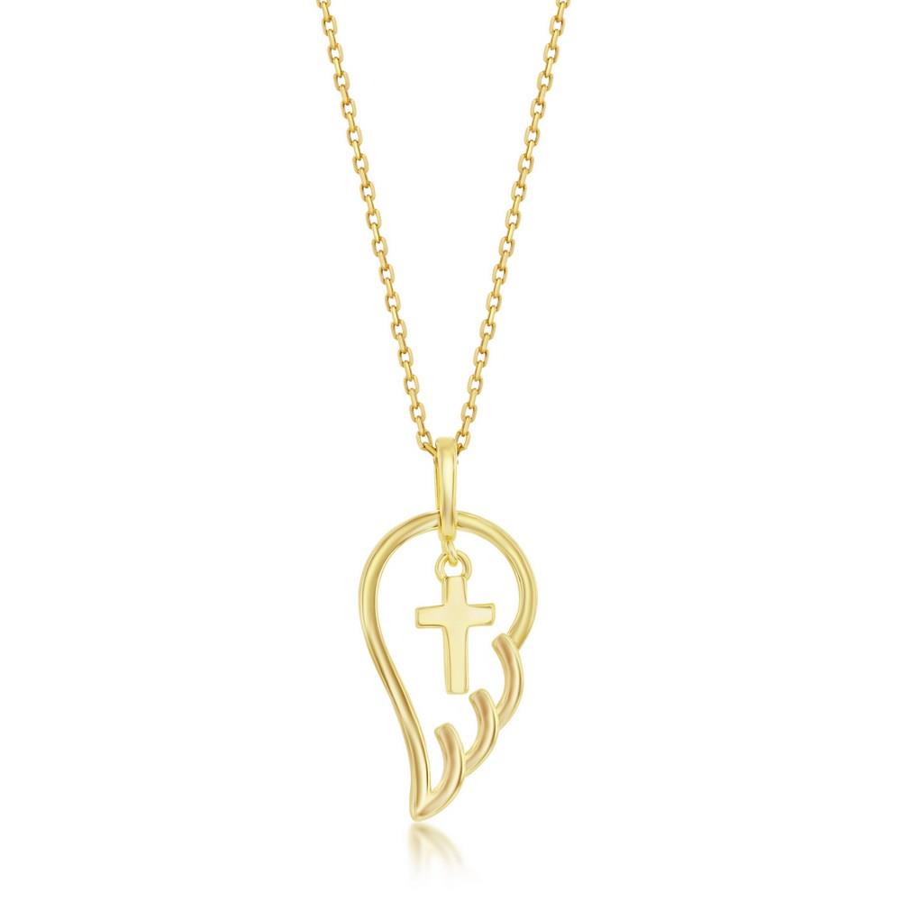 Sterling Silver Gold Plated Angel Wing with Cross Pendant on 18" Chain