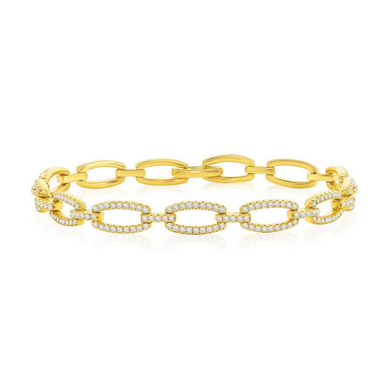 Sterling Silver Gold Plated Open Oval Cubic Zirconia Link 7" Bracelet