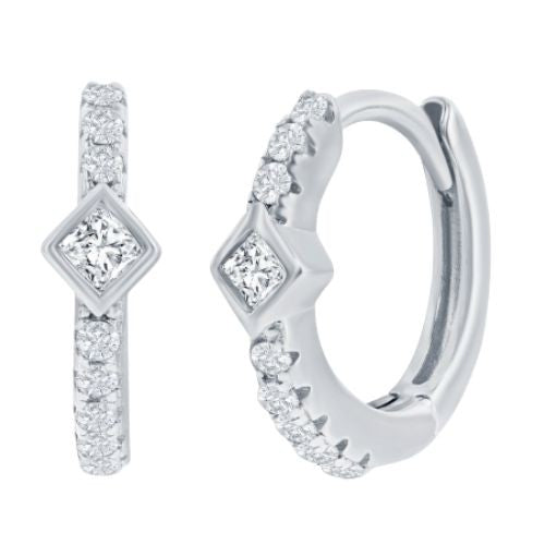 Sterling Silver 11mm Cubic Zirconia Diamond Shaped Huggie Hoop Earrings