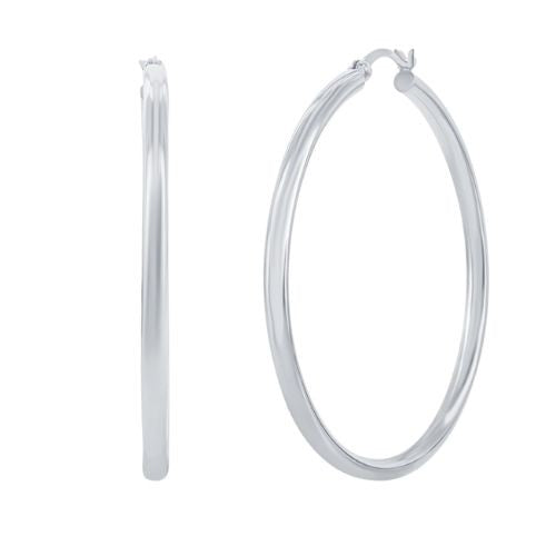 Sterling Silver 3X50mm High Polished Hoop Earrings