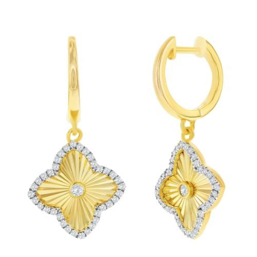 Sterling Silver and Gold Plated Diamond-Cut Flower Cubic Zirconia Earrings
