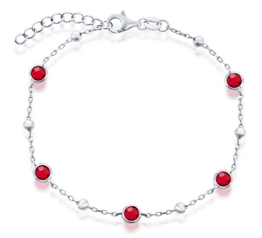 Sterling Silver Bezel Ruby Cubic Zirconia & Bead 7+1" Bracelet