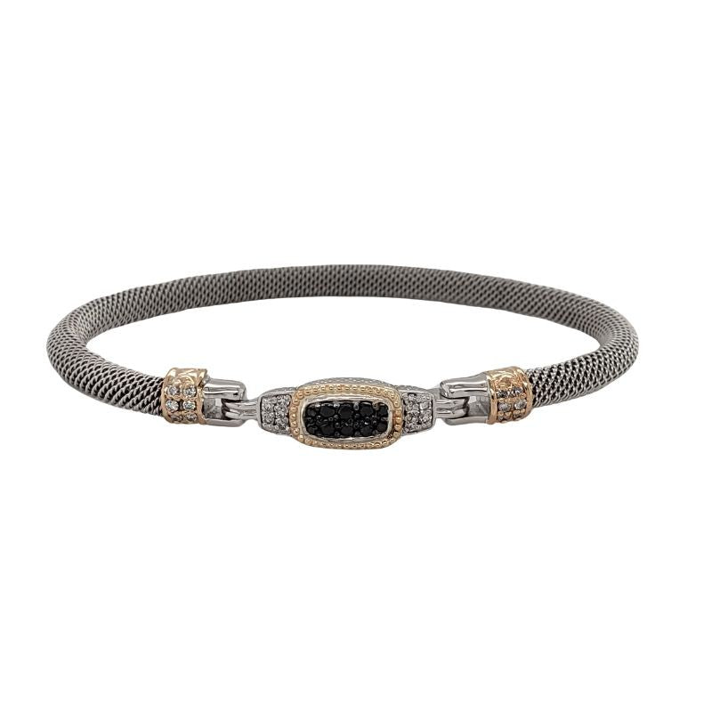 Sterling Silver Classic Mesh Bangle 7" 32 Lab Grown Diamonds=.42 Carat 14 Karat Yellow Caps
