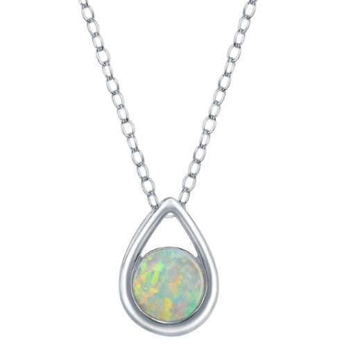 Sterling Silver Created Opal Pear Shaped 16"+2" Necklace