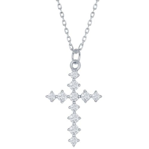 Sterling Silver Cubic Zirconia Cross 16"+2" Necklace