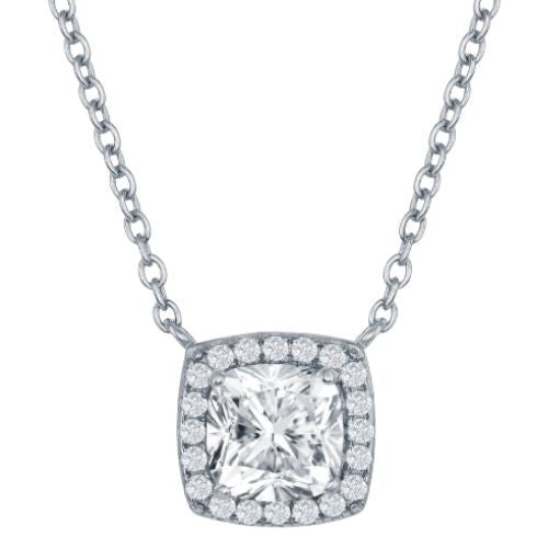 Sterling Silver Cushion-Cut with Cubic Zirconia Border Necklace 18" + 2"
